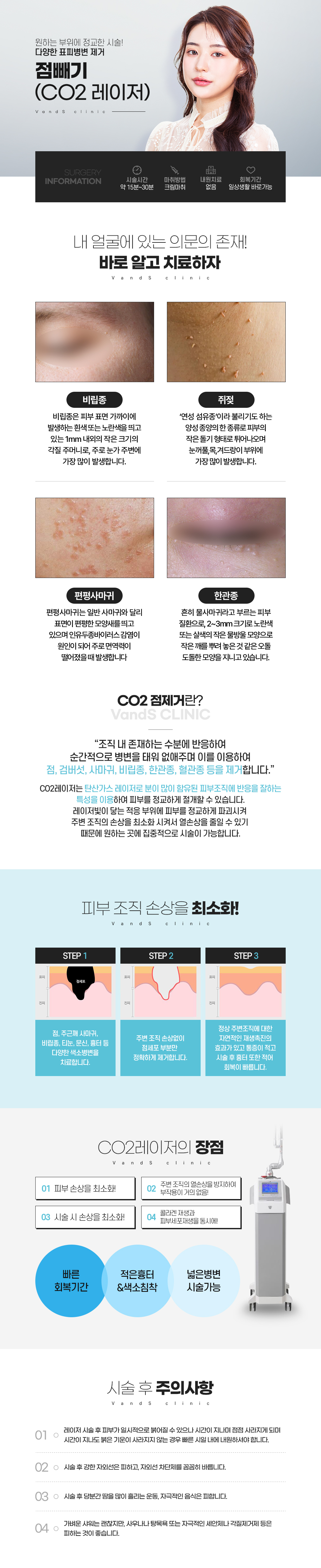 점, 비립종, 쥐젖, 사마귀, 한관종 제거